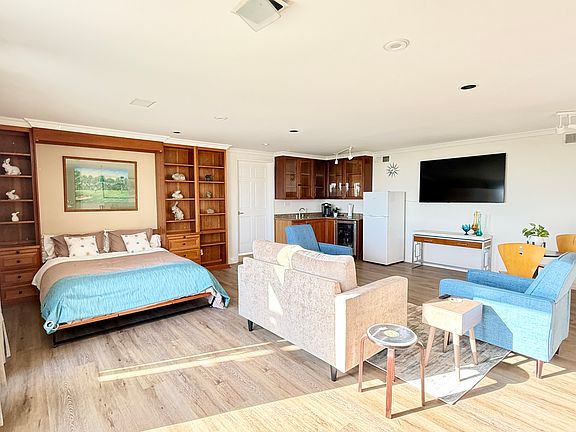 Charming Studio in the Coveted Rancho Palos Verdes Community Discover this delightful studio rental tucked away on a private road in the prestigious community of Rancho Palos Verdes. Enjoy peace and privacy with convenient access to upscale amenities and sweeping full-city views. This open-concept living space is thoughtfully designed to be both functional and flexible. A built-in Murphy bed with bookcases creates a stylish living room backdrop by day and a cozy sleeping area by night. The spacious layout comfortably accommodates a sofa and dining table, while the inviting fireplace sets the tone for a relaxing evening indoors or al fresco on your private patio. The unit includes: A compact kitchen with countertop, sink, and refrigerator Dedicated bathroom Generous walk-in closet for ample storage On-site laundry One parking space in a shared 3-car garage for added convenience and protection Perfect for someone seeking tranquility without compromising on access and comfort, this studio offers a unique blend of charm, convenience, and California living. Lease for 1-3 months with possible extension. No smoking or vaping on entire property. No overnight guests. No laundry after 10pm.