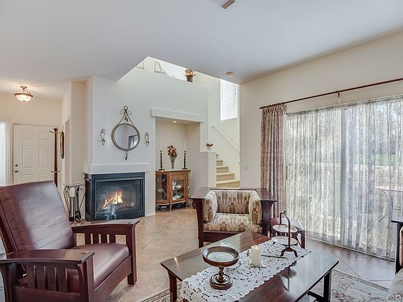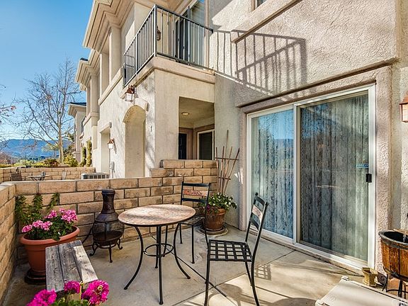Come see this exquisite former model Townhome located in the showcase building of the desirable Oak Springs Villas Community! The location is fantastic as it is situated at the front of the Community and has beautiful views of the park and surrounding mountains. In addition to the excellent location, it is an end unit which will give you additional privacy. This home boasts custom interior paint and wall paper, Italian marble flooring, two patios with plenty of room for seating - one with a relaxing view of the park and mountains and the other one which you have your private front door entrance. Upon entering this home you will be delighted with the light and bright feel, together with a floor plan that includes a formal dining area, fireplace in living room and a slider that goes out onto one of the patios. Upstairs you will find a spacious loft which can be used for anything from a theater room to an office/work/gym space. Additional upgrades include a Water Conditioning System and an Air Filtration System. This meticulously maintained home shows true pride of ownership!!! Park is located across the street on Oak Spring Canyon Road, close proximity to freeway access and shopping. Another great feature of this property is that there is NO MELLO ROOS!!!