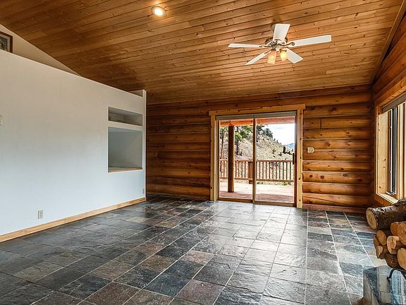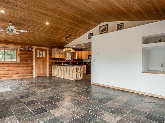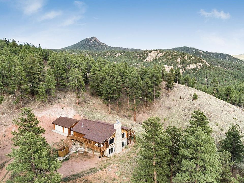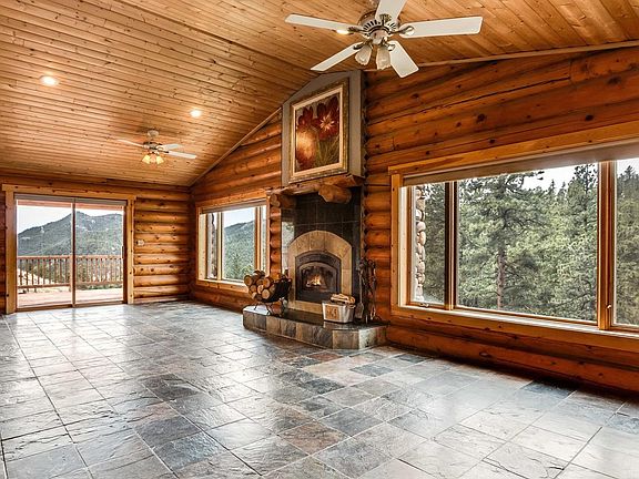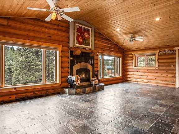 Welcome to this beautiful log home on 40 acres built in 2002. Main level living in this raised ranch with slate floors and wood fireplace surround in great room, tongue and groove vaulted ceilings, 2 beds on the main with access to the beautiful partially covered deck from the master. Oversized 5 piece bath with oval tub and large shower and laundry located on the main. Walkout lower level family room with gas fireplace, kitchenette, bedroom and bonus space for workout room or office. 3 car detached garage and ample additional parking for recreational vehicles. There is an additional outbuilding perfect for a workshop with wood stove, garage and extra storage. Well and zoning allow for horses and water shares are available with Mountain Mutual Reservoir Company. This home has so much to offer that you must see to appreciate it. The privacy and views at this price are hard to find and just a short 5.5 miles to Highway 285 or 1.5 miles to Pine Grove.