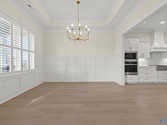 - Features: 10’ + Ceiling, Crown Molding, Tray Ceiling(s), Wainscoting, Wood Floor