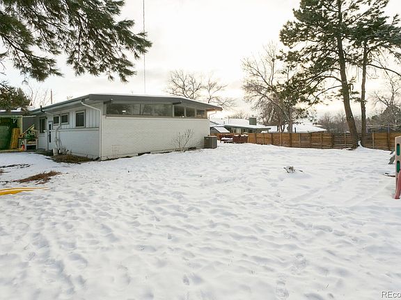 Highly sought-after, Mid-Century Modern, California Contemporary Ranch home located in Dream House Acres, South facing, nicely updated with thoughtful accents and a beautiful new private side patio. Large living room with fireplace and windows running the entire front of the house to let in that Colorado morning sunshine. Beautiful original oak flooring accents a peninsula/bar. Five large bedrooms (two in basement are non-conforming) assures that there is enough room for everyone to stretch out. Unique Jack-and-Jill soaker tub room with upscale light on dimmer for relaxing. Granite wet bar in basement is tastefully designed and is perfect for entertaining, out-of-town guests, or for the kids when they host a slumber party. The basement bathroom has an oversized shower. The basement could be used as a separate, two-bedroom apartment (rental opportunity). The basement unfinished area is a nice work shop area. This house includes all appliances, even the mini fridge for the bar downstairs and the washer and dryer. This home also features a 3 year old furnace & a/c,