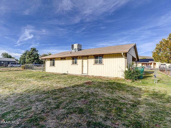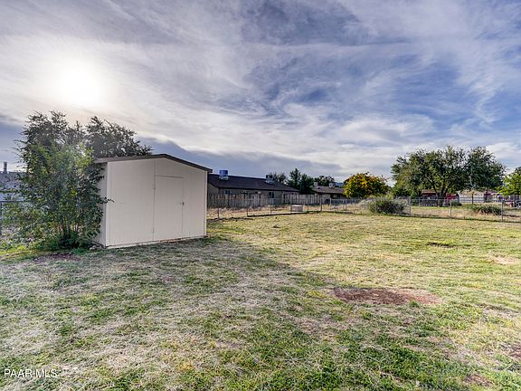 Tucked within a peaceful Prescott Valley neighborhood, this inviting property rests on a spacious, fenced lot brimming with potential. Inside, a charming wood-plank ceiling and soft natural light create a warm, welcoming atmosphere. The functional kitchen offers generous storage and a sense of homey comfort. Step outside to a large yard where possibilities abound, plant a garden, host gatherings, park your RV, or design the outdoor retreat of your dreams. Covered parking and a storage shed add everyday convenience. Perfectly situated near shopping, dining, parks, top rated schools, entertainment, and just a scenic drive from historic Prescott, this property offers the freedom of no HOA and the space to bring your vision to life.