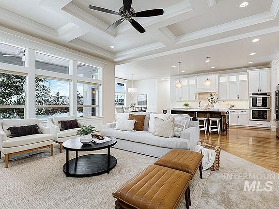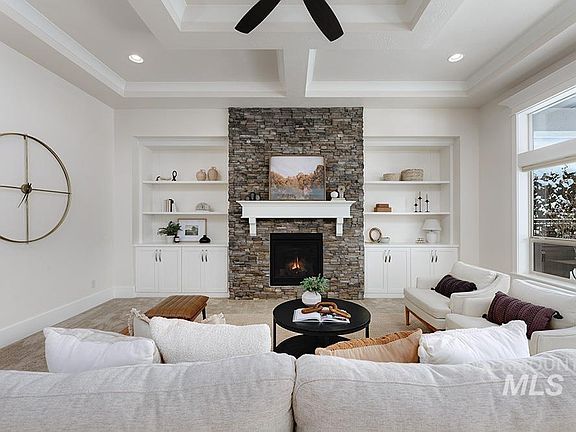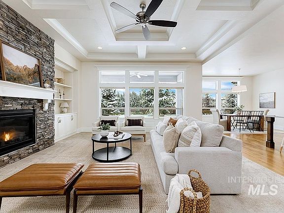 A beautifully tailored single level in the premier Ashbury neighborhood! Built by James Clyde, this modern Craftsman home was designed to last, featuring impeccable quality and timeless finishes with low-maintenance grounds. The upscale Ashbury community provides an idyllic lifestyle, with beautiful landscaping, expansive open space, parks, and a community pool/clubhouse set just minutes from downtown Meridian and Eagle. The thought-out floorplan is built around an expansive open great room that focuses on the connection of daily living with rooms that extend out for privacy. Gorgeous wood flooring, detailed lofty ceilings, neutral colors, and designer finishes provide a clean, layered backdrop while large windows invite sunlight in. Magazine-worthy, the gourmet chef's kitchen is equipped with an oversized entertaining island, sparkling marbled quartz countertops, clean-lined custom cabinetry, and an impressive Thermador® appliance package.