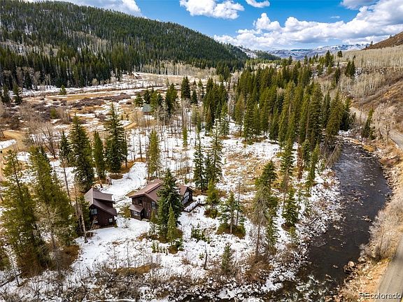A rare opportunity to own a private cabin in the woods directly on the river. This lovely home offers 4 spacious bedrooms and 4 baths in an open floor plan. The main level hosts a great room with 2-story floor to ceiling windows looking out to a deck and the Elk River. The large windows flood the home with sunlight and offer viewing of various forest visitors. A wood burning stove, T&G vaulted ceilings, beetle kill paneling throughout the home, and wood beams make for a cozy cabin-in-the-woods feel. The home was remodeled and includes updated hardwood floors, slate tile, and slate countertops. The kitchen offers an island, hickory cabinets and stainless-steel appliances. An open dining space offers room to share meals or game nights with friends and family. A large deck is accessed from the living area and is the perfect spot for watching kayaks come down the river or just enjoying the privacy of your backyard. Through glass French doors is the main level primary bedroom with access to the backyard, a walk-in closet and en-suite bathroom perfect for a peaceful soak in the tub. Off the dining room there is an addition including a large laundry and storage room plus a spacious, wheelchair accessible bedroom with its own separate entrance and en-suite bathroom. Upstairs is a loft space that overlooks the great room. Down the hall from the loft space are two additional bedrooms with ample space for guest beds and more. Both upstairs rooms have large windows and vaulted ceilings, allowing for natural light and sounds of the river. Additionally, there is a detached 2-story garage/shop, upstairs is heated and has potential for an apartment. Enjoy renowned Colorado fly fishing in your backyard with private river access, plus a plethora of additional outdoor recreation with proximity to the national forest and neighboring lakes. Tucked in on 1.07 acres of wooded land with seasonal wildflowers and direct river access, this is truly a special place to be enjoyed year-round.. B