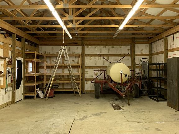 - Exterior Features: Trees, Storage Shed, Pole Barn/Building, Porch- Covered