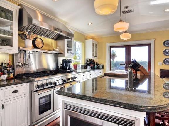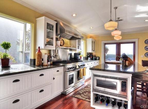 Very special single level, single family home in Top of the World. Completely upgraded, yet very warm and livable, featuring hardwood floors throughout, remodeled kitchen with granite countertops, extended center island with bar, top of the line stainless steel appliances and walk in pantry, living room with granite fireplace, coffered ceilings and dropped crown molding with rope lighting feature, fantastic sun room surrounded by the charming outdoor garden area which can be used as a den, dining or family room, bedrooms have bay windows and french doors plus one has a built-in murphy bed, gorgeous bathrooms with custom tile and floating vanities, front deck with ocean and Catalina views and back deck with spa, big lot providing loads of privacy. Attached garage with race deck flooring, washer/dryer hook-ups and extra long driveway to park three cars.