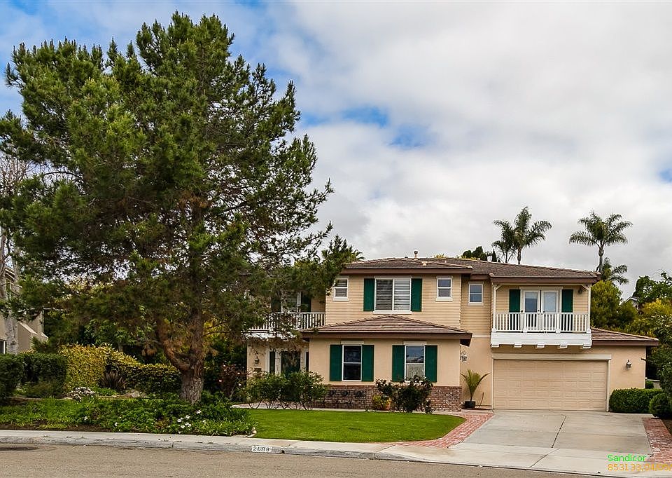 Located in a much desired, but rarely available, cul-de-sac of La Costa Valley, this 3,590 sq ft home offers four bedrooms, 3.5 baths, loft, 3 car garage and a first floor library or office with an alcove which could easily be made into a 5th bedroom with walk-in closet. The living room features a fireplace, a 20 foot ceiling and dramatic spiral stairs and a balcony. The adjacent formal dining room opens to the backyard. The kitchen has a pantry, appliances upgrades and large windows facing a private rear yard with lush greenery. It’s open to a large family room with a second fireplace. The large master bedroom offers a sizeable walk-in closet. The master bath features two separate vanities, a tub and a shower. All three of the bedrooms have direct access to bathrooms and two have their own private balcony. The property is located in close proximity to excellent schools, stores, restaurants, golf courses, and the beach. One of the outstanding features of the neighborhood is the Valley Club which offers Olympic-size heated pool, kiddie pool, hot tub, gym, club house, tennis courts, and a pre-school. Don’t miss out on this opportunity to make this home your own.