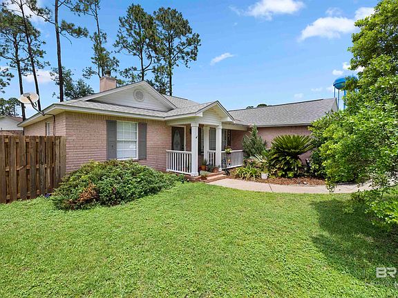 Welcome to Spanish Cove in Lillian, Alabama. Traditional all brick home with 3 bedrooms and 2 full baths. Enter to find an airy open concept with tile floors, designer paint color, and high vaulted ceilings. Great room Is spacious with a brick wood burning fireplace open to the kitchen, formal dining room, and the breakfast room. The kitchen is set with granite countertops, breakfast bar, new stainless-steel appliances which includes dishwasher, microwave, oven and refrigerator. The primary bedroom is one side of the home with walk in closets, double vanities with granite, and a walk-in shower. Two bedrooms on the other side of the home with a hall bath. You will love this pie shaped backyard with a patio and privacy fence. Windows were replaced in 2024 with storm windows and the roof was replaced @ 5 years ago. HVAC is 4 years old with a halo air and dehumidifier system. The water heater is electric @ 6 years old. The community features two clubhouses, a fishing pier, a year-round pool, pickleball and tennis courts, a basketball court, a fitness center, a playground, shuffleboard, nature trails, and more. All information provided is deemed reliable but not guaranteed. Buyer or buyer’s agent to verify all information. Buyer to verify all information during due diligence.