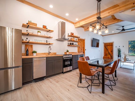 • Exterior features: Bicycle storage, Borders National Forest, Brand new appliances, Riverfront, Utilities fee required