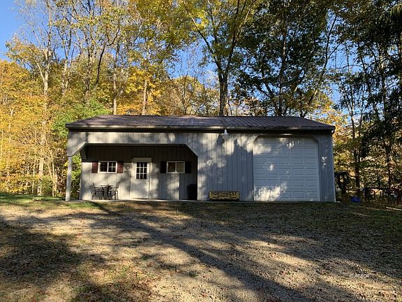 • Exterior Features: Trees, Storage Shed, Pole Barn/Building, Porch- Covered