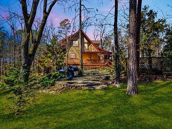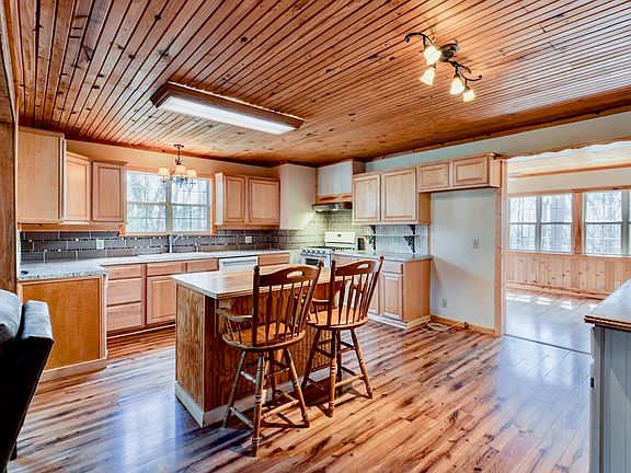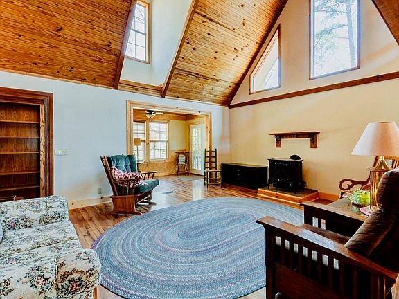 RUSTIC COUNTRY ELEGANCE! PRIVATE! ACREAGE! This large,gorgeous,cabin is a beautiful surprise!Easy from the highway,on 6 lovely wooded acres, w/plenty of wildlife! Open & spacious,you can enter from the front porch &sitting room,or the covered deck. 20 foot carsided ceilings in the Living room, w/ wood walls& built ins, give it the rustic feel so at home in the woods. The huge remodeled(2018)kitchen is completely modern. The Dining room is also a sun room,& leads to the comfortable but cozy screen porch.The Master BRoom &loft upstairs are an oasis of privacy.A large family room in the basement has a Flag Stone floor, (fossils)& another gas stove for extra heat. Details like wainscoting,rosette trims, antique light fixtures,add to the esthetic. HVAC 2015. 2 state parks w/in 4 mi. Boat Launc