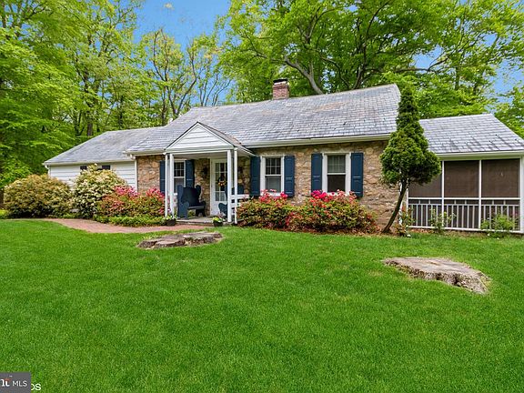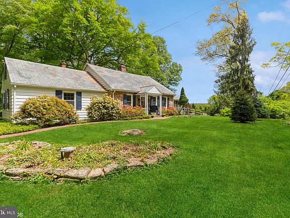 Buckingham stone house is a true charmer situated on a breathtaking mature and lushly landscaped lot. This is a very special one of a kind home and has views of Buckingham mountain and is loaded with character. Ranch/cape style home home offers a large family room with fireplace, beautiful deep windowsills t/o, double front door entry, hardwood floors, formal dining room, eat in kitchen with stainless appliances and Quartz counter top, newly rebuilt vaulted ceiling screened porch with exposed stone wall, two first floor bedrooms with a second floor loft bedroom in addition to a huge unfinished second floor room, 2 full bathrooms, dressing room area, mostly new windows, huge rear stone walled patio, large "turn around" driveway with loads of parking and a 2 car detached garage. Basement laundry could easily be relocated to first floor, new oil tank, new furnace and new leaf guards. This is truly a very special and unique property situated on a serene lot - pride of ownership is apparent throughout.