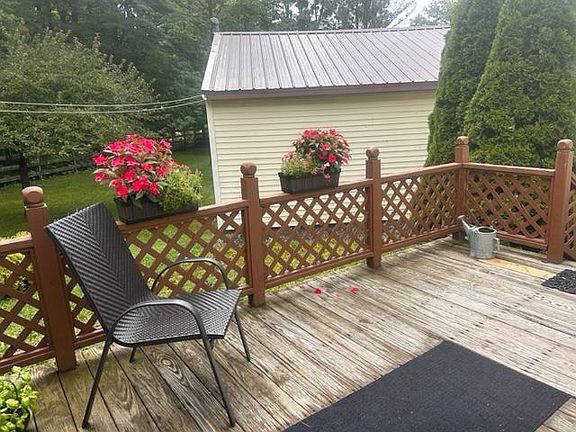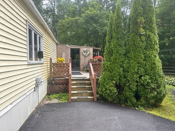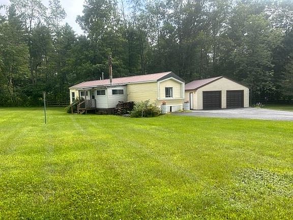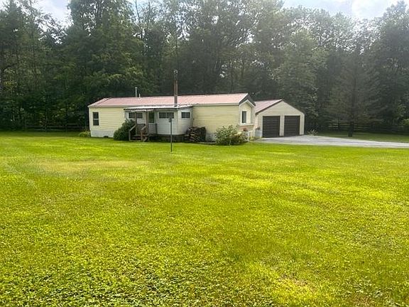 Great location for this property set on 2.1 acres which is level and fully fenced. A manufactured home with two bedrooms and a bath with new walk-in shower. Nice sized living room and the eat-in kitchen has plenty of space. There is a heated room off the front with woodstove and room to sit and take in the view. large deck off the side of the house close to the over-sized two car garage. Come and take a look!!!
