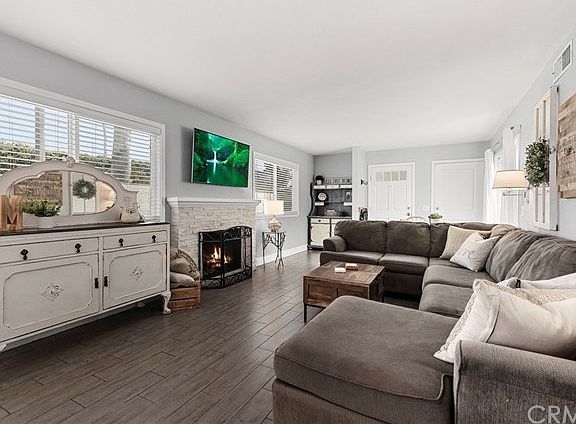 Gorgeous single level home in highly sought after Fullerton neighborhood. This "Gingerwood" gem is sure to please. Great open floor plan with lots of natural light. Beautifully remodeled kitchen with stunning design features. Quartz counter tops, custom backsplash, Shaker style cabinetry with soft close hardware, pantry, recessed lighting and stainless steel appliances - 5 burner gas range, refrigerator, microwave and dishwasher. Contemporary flooring & baseboards. Smooth textured ceilings. Dual pane windows, Central A/C and Heat with Nest Thermostat, remodeled guest bathroom, 2 panel doors and a cozy gas fireplace. Primary bedroom suite includes dramatic wall treatment, walk-in closet and remodeled bathroom with walk-in shower. Opening to the living area, the spacious courtyard is a perfect compliment to the home and lends itself to the California indoor/outdoor lifestyle. Huge tropical backyard ideal for entertaining, includes block wall fencing, low maintenance turf, palms and garden area. 2 car attached garage with direct access, roll-up door, automatic opener, work bench and spacious laundry area. Association amenities include sparkling pool and spa, tot-lot, club house, lush greenbelts and walkways and grounds maintenance. Central to everything Orange County has to offer. Award winning schools, Cal State Fullerton, Tri-City Park, Downtown Brea, Brea Mall, Angel Stadium, Honda Center, Disneyland, Knott's Berry Farm and much, much more.