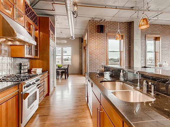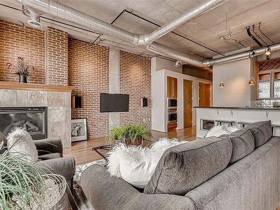 Amazing loft style living with incredible design elements, high-end upgrades & a prime location in Jefferson Park. Stunning city views through a wall of windows, soaring 11' ceilings, exposed brick & duct work w/ newly refinished hardwoods floors. Gourmet kitchen w/ ample cabinetry, slab granite, two SS Wolf ovens & Sub-Zero fridge. The large family room features track lighting, built-in surround sound, gas fireplace & unobstructed city views from inside or on the balcony. The elegant dining room is the perfect space for casual or formal dining which includes a Bruck Flight Spiral light & opens to a second balcony. The oversized master bedroom includes two walk-in closets, a large jetted bathtub & steam shower w/ aromatherapy & dual shower heads. Large second bedroom, 3/4 bath w/ slate tile, several large closets for storage, 2 parking spaces & rooftop patio w/ both city & mountain views. Great location w/in walking distance to Jefferson Park, Highlands Square & LoHi.