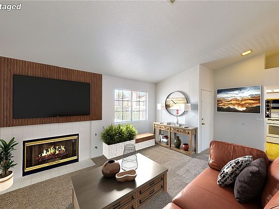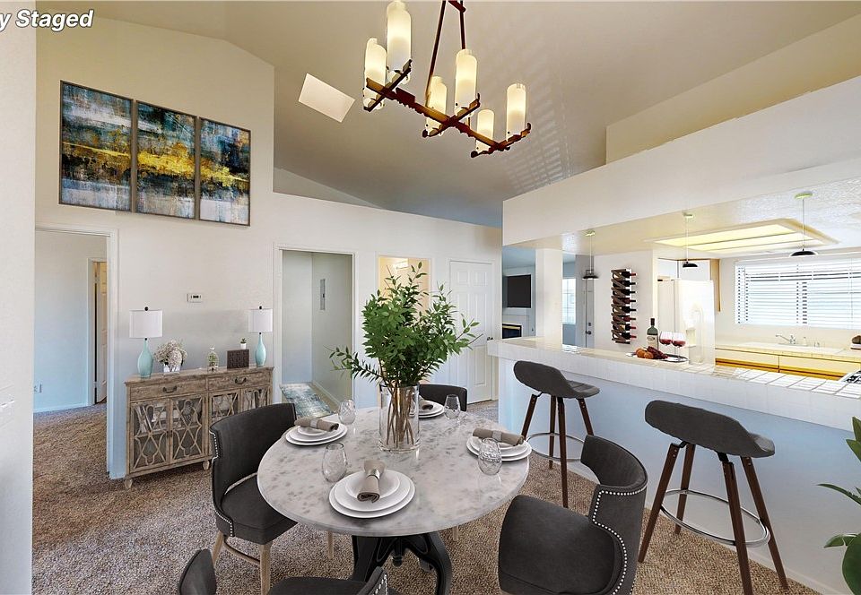 SELLER IS OFFERING BUYER INCENTIVES TO BE APPLIED TOWARDS RATE BUYDOWN and/or CLOSING COSTS AT LIST PRICE! Awesome Layout and Open Floorplan on this one level upstairs condo with vaulted ceilings giving an open airy feeling and corner location! Easy freeway access, located near bus lines & shopping. It has 2 spacious bedrooms both with large walk out sliding doors to a huge covered patio overlooking a nicely manicured lush green landscaping. Nice sized family room with fireplace. Open concept kitchen to the dining area and family room with lots of cabinetry and storage, plus a breakfast bar and all appliances included. Brand new carpet and flooring throughout. Security screen door at the front entry. 2 assigned parking spots, one covered and one not. Community pool/spa, tennis court, and basketball goal. Water, trash, and sewer included in HOA dues. Move in Ready! Make sure to check out the Virtual Tour Link to the Matterport walking tour to see everything about this great home.