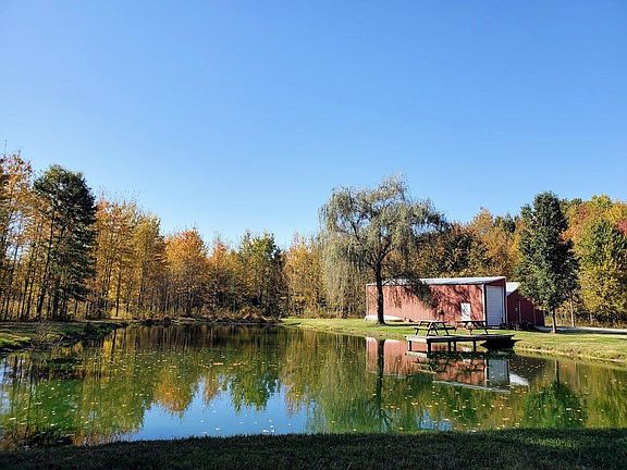 Private meticulous well maintained brick ranch w/deck overlooking .3 ACRE stocked pond surrounded by woods on 11.6 acres Great retreat! Workshop/RV storage + 2 car att gar. Geothermal HVAC '12. Fin LL Rec Rm/laundry/storage/flex room w/o. This is a beautiful property.