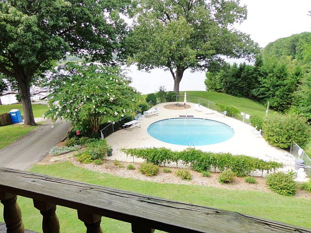 Super nice condo with beautiful views of pool and lake.. Decorated beautifully. Main floor has covered porch and upstairs bedroom has balcony overlooking lake and pool.. Great full-time or part-time lake home, All appliances included and seller will sell some furniture. The monthly condo common usage fees of $200/month cover pest control,septic, wifi,tv,trash, yard, access to pool and marina. If you want a lake place to hang out and not have yard work this is perfect.New high efficient HVAC system in June 2017.. Marina has some boat slips available for condo owners.
