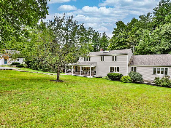 This charming, antique cape is located in sought after Brookline, NH. Situated on a very private 3.9 acre lot this home boasts an oversized first floor primary bedroom with a walk in closet and primary bath. The first floor also includes a bedroom/office and a half bath with laundry. The updated kitchen with a large center island and stainless steel appliances provides the perfect gathering place for guests. The cozy living room features a fireplace with a woodstove insert for those cold winter nights. There is also a formal dining room adjacent to the living room. The second floor includes 3 more bedrooms and a full bath. There is a family room in the lower level as well as loads of storage space. The house features hardwood floors throughout the first and second floor and new carpet in the primary bedroom. All this along with the award winning Hollis/Brookline school system make this home a must see.