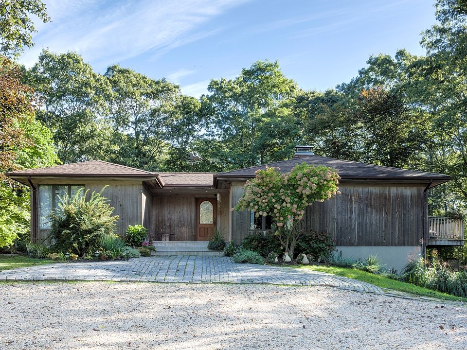 Great Opportunity to own in Hampton Bays! This one level 2 bedroom, 2 bath Contemporary home provides the best of both worlds: close proximity and easy access to shops, beaches and transportation plus ideal privacy on 1+ Acres of beautiful, park-like grounds. This home features a living room with fireplace, a large kitchen with center island and central air and vac systems. Multiple sliders lead to decking, hot tub and gardens. Room for Pool and expansion. Detached garage or artist studio. Move-in ready with motivated Sellers.