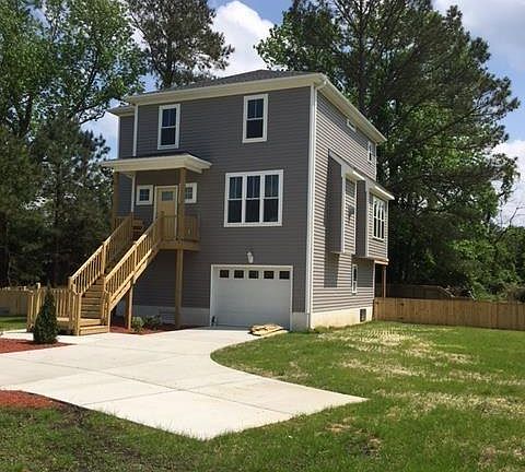 28B Forrest Drive Description A beautiful new house built in 2017 by Engle Construction, a highly rated local construction company. This stand-alone house is their Seahorse Model with 1658 square feet of living space, 3 bedrooms, 2.5 bathrooms. Two floors of living space sit atop a finished garage with plenty of storage space. This home sits on a 0.3 acre flag lot with a fenced-in back yard and is within walking distance to the highly rated Poquoson schools. The 1st floor open floor plan features 9 ft ceilings, foyer, spacious family room with gas fireplace, dining area, kitchen, laundry room, half bathroom, and sliding glass door to the back deck. The kitchen boasts a bar, dining area and full stainless-steel appliance package including side-by-side refrigerator. The 2-zone HVAC system allows for separate temperatures on the 1st and 2nd floor. The 2nd floor has 3 bedrooms, 2 full bathrooms, including a master bath and walk-in closet. The back yard has liquid propane tank hookup that feeds the back deck for a gas grill and the fireplace. Wood fencing protects the back yard with plenty of room for dogs to run and children to play. The ground level is an 800 square-foot car garage with plenty of extra space for a workshop, a motorcycle, and storage along with the car. The driveway was extended along the right side of the house for extra parking. Extra enclosed storage space under the stairs is accessible from the garage. Stairs lead up from the front yard and from the garage to the 1st floor foyer. The stair ways are extra wide which makes moving furniture much easier. Contact owner at 615-479-6215.
