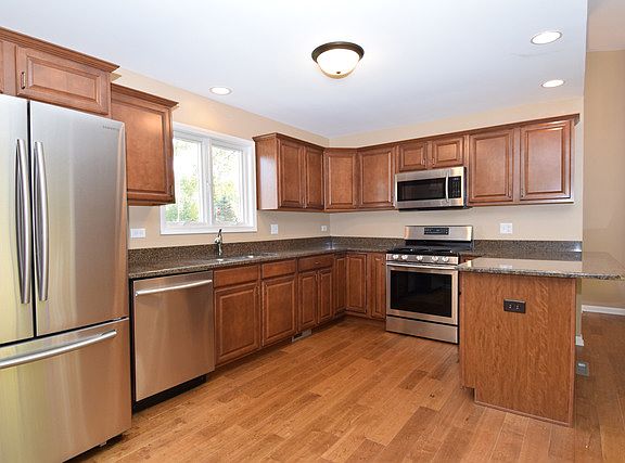 UPDATES EVERYWHERE! NESTLED ON 1.25 + ACRE LOT! 3 levels of living space includes eat-in Kit w/ gorgeous hdwd fl, ss appls, granite! Eating Area has brick wb fpl, vaulted ceiling, built-in shelving, sgd to deck. Spacious FR bright w/ natural lighting, berber carpet. MBR w/ large closets, ceiling fan/light. Tons of privacy yet close to shopping, dining, train station St. Francis High, Cantigny Park & CDH!
