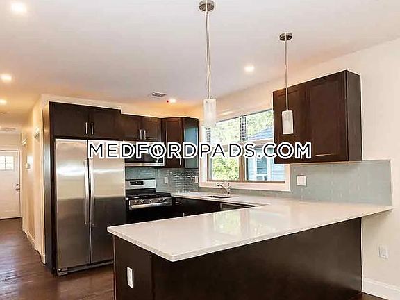 LARGE 4 bedroom apartment for rent in Medford Newly renovated and the unit features: -4.5 bathrooms -Hardwood flooring -Laundry in unit -Driveway parking for rent -Beautifully modern throughout No security deposit due