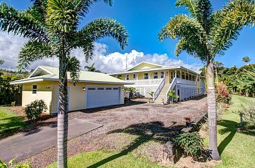 View website: http://oldmamalahoa.AgentMarketing.com - Hakalau Village Plantation Charmer along the Hamakua Coast. Beautifully constructed in 2008, this large custom home has it all. Currently the owners are running a very successful vacation rental in half of the house. Move in and immediately have income in your new home. Separate entrances make for ultimate privacy with both units having their own decks for outdoor enjoyment. Home features granite countertops and beautiful wood cabinets in kitchens and bathrooms. All ceilings are either 9 feet in height or vaulted with interesting architecture. Separate room for your office. Two car garage with separate storage area totals 672 sq ft. The more than 1200 sq ft of covered decks offer beautiful views of the ocean, incredible sunrises, passing ships and whale watching while listening to the sounds of surf. Just a 5 minute stroll to the cliff's edge or down to Hakalau Bay for a refreshing swim or body boarding. Vacation Rental is handicap accessible and includes all present reservations and websites with great reviews. This turnkey business includes furniture, appliances, kitchenware, linens, decorative items and cleaning supplies. Lush landscaping includes Pineapples (nearly 100), dozens of Bananas, Papaya, Mango, Tahitian Lime, Blood Orange, Lychee, Lilikoi, Blue Jade, Hibiscus, Plumeria and many other tropical plants.