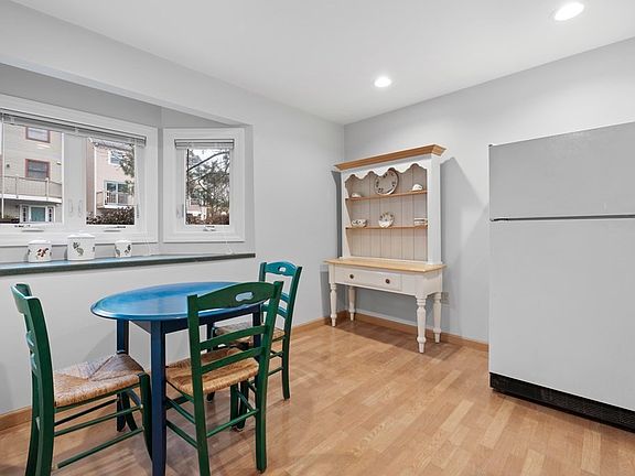 Welcome to Washingtonian Court! This 2 bedroom 2 bathroom condo unit was the model unit for the building, so it was designed to impress. This spacious condo features a fireplace, central heating and cooling, in unit laundry, private outdoor space, private storage room and parking! The quaint eat in kitchen is thoughtfully laid out maximizing storage and counterspace. Adjacent is the oversized living and dining room streaming with natural sunlight during the day. Access your private patio off this space through french doors to enjoy your morning coffee or dine al fresco. The bedrooms are located to one side of the unit reflecting the thoughtful planning when it was built; the primary bedroom has copious closet space and an ensuite bathroom. The building is overseen by a strong association whose care for the property and its residents is evident immediately. This versatile home will be appreciated by anyone who is looking for a spacious layout, storage, a convenient location, and more!