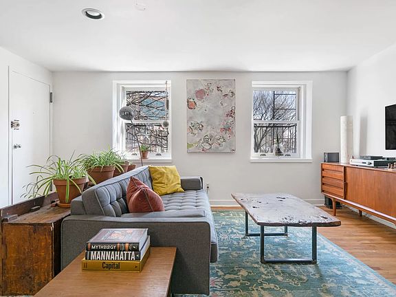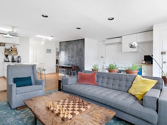 Located in vibrant Boerum Hill and steps to every amenity downtown Brooklyn has to offer, you will find this charming and light-filled top floor co-op, just three flights up. This is your opportunity to own in an intimate, friendly building with the greatest prize of all: roof rights to create the private outdoor space of your dreams. This two-bedroom, one bath aerie is perched at the intersection of State Street and 3rd Ave, a stone's throw from incredible dining and shopping, numerous cultural institutions including BAM and Mark Morris, and every possible transportation option available. This lovely home is located on the top floor of a beloved co-op, once the home of the Brooklyn Central Dispensary. Entering the the main living area, with sunny, southern exposure and overlooking the garden of the building, you will find another rare gem- a working wood burning fireplace. Open to the living room and ideal for entertaining is the recently remodeled chef's kitchen including a 10 foot stainless steel island with ample seating for four bar stools. The kitchen has been cleverly designed to maximize storage. Aquasana water filtration system has been installed. The apartment encompasses a large master bedroom with a decorative fireplace and built-in shelves beautifully tucked into the exposed brick walls, creating a loft-like feeling. The additional bedroom has the same exposure as the MBR and is adjacent. Two large floor-to-ceiling closets in the master bedroom and secondary bedroom are outfitted with Elfa storage systems. Sound dampening gas filled double pane windows ensure quiet and rest in the bedrooms. The recently remodeled bathroom has been designed with Duravit and Hansgrohe fixtures, custom cabinetry and beautifully tiled floor. Here you will find the stacked Bosch washer and vented dryer. Some of the recent upgrades the current owners have added to the unit include an efficient three-zone mini split system for heating and cooling and Nest protect smart carbon monoxide/smoke alarm. A dedicated storage area in the lower level of the building is included with this unit. The exclusive roof rights which come with this home include architectural drawings for plans for an exterior spiral staircase to your private roof terrace, with spectacular 360 degree views of Brooklyn. Please consult an engineer or architect for specific details. Located in historic Boerum Hill but in the middle of everything, this pet-friendly apartment checks all the boxes!