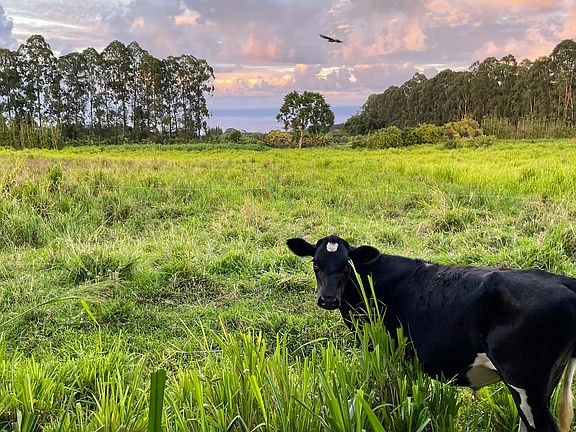 12.6 acres of gently sloping rich volcanic land support rotationally grazed cattle, vegetable gardens, and dozens of fruit trees and canoe plants, including lemon, orange, tangerine, tangelo, soursop, banana, papaya, avocado, loquat, dragon fruit, mountain apple, lychee, pomelo, and more, with space for additional crops or livestock. This is the ultimate growing climate at the perfect altitude with deep soil, abundant sunshine, cooling shade, and evening showers.
