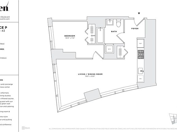 FARE Act Disclosure. This listing is intended to be used by prospective renters and may not be republished without the prior written consent of The Durst Organization. Absent an express written agreement or acknowledgment to the contrary, The Durst Organization and its affiliates (1) do not utilize the services of third-party brokers or agents in connection with the rental of residential apartments and (2) will not assume responsibility for any brokerage fees incurred by a prospective renter. The Durst Organization and its affiliates will not charge or collect fees from a prospective renter except for such fees as permitted by law and disclosed to the prospective renter.