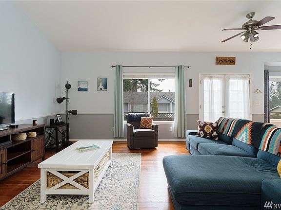 Beautiful 3 bedroom, 2 bathroom home with tons of light, vaulted ceilings, open floor plan and incredible view of the sound w/sunsets. Home is in perfect condition with fully updated kitchen and main room flooring. Located on a quiet dead end street with ample parking for cars & RV. Perfect grounds to enjoy gardening and recreation with large custom deck in back to absorb the stunning views. Huge garage for storage. Great location for commuting to Boeing, shopping & schools. Truly a gem!