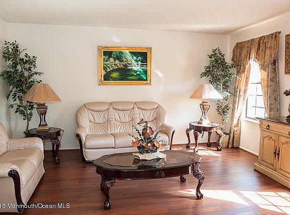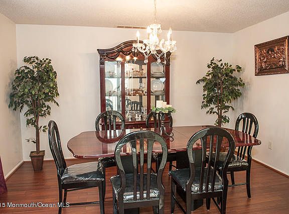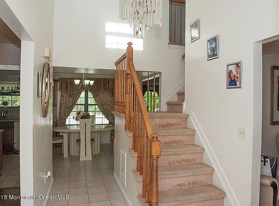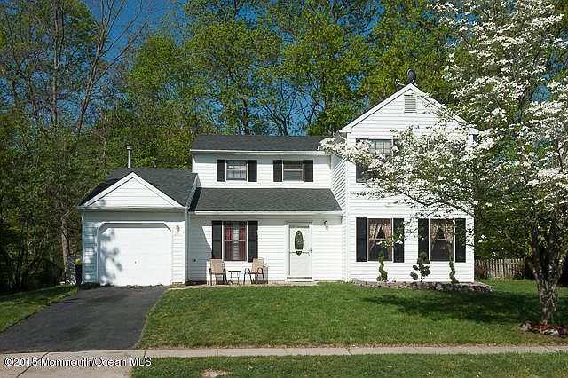 Pull up & enjoy the curb appeal of specimen trees and inviting front patio. Enter into the two-story foyer, w/ entertaining Living room to the right and Dining room to the left for special occasions! Ahead is the lovely open & bright Eat in Kitchen - updated with beautiful cabinetry and quartz counters. Kitchen adjacent to Family room with inviting Fireplace. The open staircase leads you to the huge Master Bedroom suite with its own updated master bathroom. Upstairs also features two other spacious Bedrooms! The main bathroom has also been updated.Sliders from Family room lead to private partially fenced in back yard backing to serene woods!Easy access to major highways close to Jersey Shore, less then half mile to Howell Park-N-Ride for easy commute , Community pool, playground and basketball court. TAXES AND SCHOOLS LISTED IN ZILLOW ARE INCORRECT - CURRENT TAXES ARE $7,794 and Elementary school is Griebling, MIDDLE school is Howell Middle School North, High School is Freehold Twp.