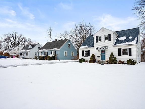 Welcome home to this charming and move-in-ready 1,152 sq. ft. Cape Cod in Greece! From the moment you step inside, you'll appreciate the warm and inviting atmosphere, highlighted by beautiful hardwood floors that flow throughout the entire home. The spacious living room provides the perfect setting for relaxing or entertaining and seamlessly opens up to the kitchen, offering a bright and functional space for cooking and gathering. Just off the kitchen, you'll find a convenient first-floor laundry and storage room—making everyday tasks a breeze. The main level also features two generously sized bedrooms and a full bath, providing comfort and accessibility. Upstairs, you'll discover two additional bedrooms, offering flexibility for guest rooms, a home office, or extra living space to suit your needs. Outside, enjoy the deck overlooking a fully fenced backyard, ideal for outdoor entertaining, gardening, or creating your own private oasis. This home is truly move-in ready, with the perfect blend of charm, convenience, and space. New tear-off roof (2023) and Furnace (2022). Don't miss this fantastic opportunity!