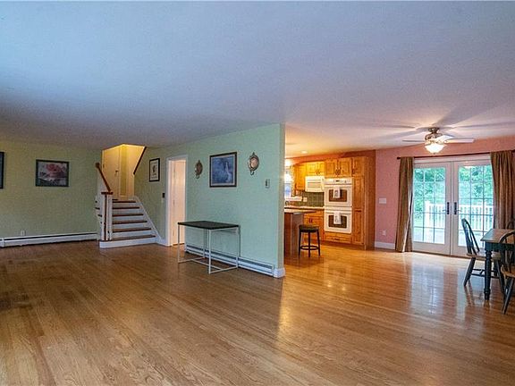 Located on .69 acre lot is this Gorgeous modern/clean and remodeled split level home. Open entertaining area on main floor consists of Eat in kitchen with island, Dining room with sliders to back deck and specious living room with propane fireplace and french door leading to a covered patio to entertain. New cabinets with stone surface counters, all new kitchen appliances and washer and dryer, gleaming hardwood floors throughout just redone, newly painted house, flat ceilings with recessed lighting, This is a unique split level home. There are two bedrooms and a full bath located one level up from kitchen/DR/LR. Walk up another few stairs and there is a private room which could be a master or playroom,familyroom or office. Remodeled full bath and laundry located in the lower level from the kitchen. There is still one more level located off garage that leads to a basement to allow lots of space for storage or potential for more finished space. Don't miss out on this one.