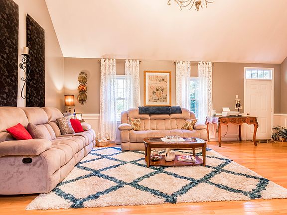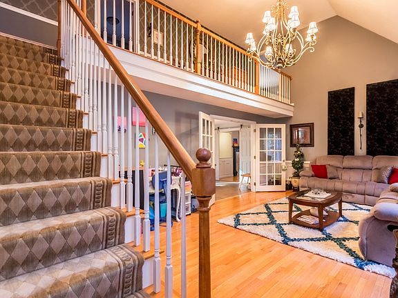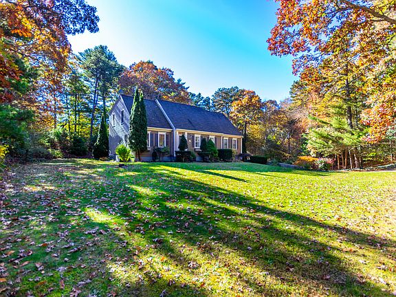 MOTIVATED SELLER! Privacy prevails! Beautifully situated in a well established neighborhood & sited on almost an acre lot is this approx. 2,400 sq.ft. Contemporary Cape with garage. Great open floor plan featuring cathedral living room with French doors that opens to the spacious dining area with slider to the back deck where you can relax & enjoy nature & cobblestone walkway to patio. White kitchen with breakfast bar, pantry & plenty of cabinets for storage. Front to back family room with gas fireplace & picture window. Wood floors throughout the main living areas. 1st floor bedroom, full bath & laundry complete the main floor. Upstairs you will find the spacious main bedroom with a walk-in closet & slider to balcony overlooking the backyard. 2 additional bedrooms, full hall bath & loft area overlooking the living room. Additional finished space in the lower level for future expansion possibilities. Gas heat, central air & irrigation. Located within a mile to Snake Pond for all summer fun. Buyers/buyers agent to verify all information contained herein.