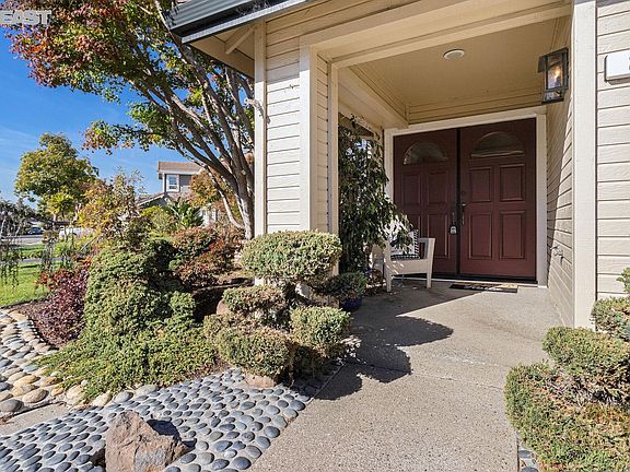 Outstanding Lagoon Orientation! Call home the largest floor plan in Harbor Bay’s Columbia development consisting of 4 bedrooms, 3 baths including a coveted 1st floor bedroom and full bath. This beautiful contemporary 2658 sq. ft. home built in 1991 is perfectly situated on a 5155 sq. ft. lot. Other fine features include dramatic vaulted living room ceiling with skylights, spiral staircase, and marble and brick fireplaces both with gas starters. Kitchen adjacent to eating area is equipped with stainless steel appliances, and granite counter tops. Hardwood floors in both kitchen and family room. Spacious primary bedroom with large walk-in closet and en suite bathroom with double vanity and jetted tub. Inviting balcony off primary bedroom. Skylights in both upstairs bathrooms offer plentiful natural light. Fresh interior paint and new carpeting (11/2022). Stylish plantation shutters. Sought after 3-car garage. Prime lot next to an open space/walkway offers a buffer from neighboring home. Private and elevated back yard. Enjoy the water view while relaxing in your own hot tub! Bay trail as well as lagoon bike and walk paths are conveniently located for your recreational pleasure. SF ferry service, Bay Farm School, Tillman Park, and shopping center close by.