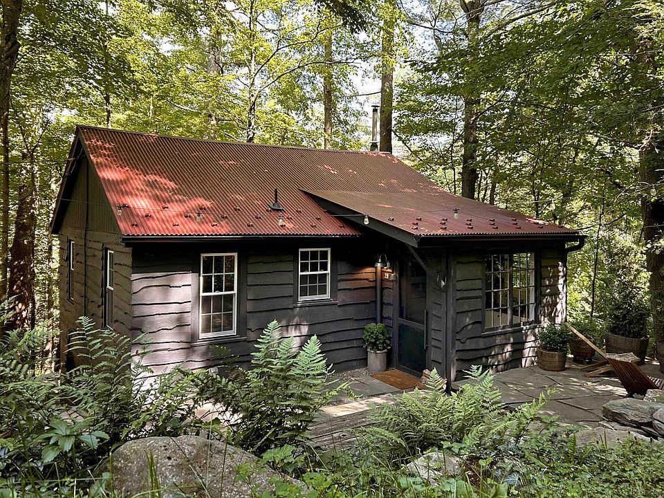 Nestled in the hills of Mount Tremper, just minutes from ever popular Phoenicia and Woodstock is 29 Andrew Lane, or Wildcat Treetop Cabin – a renovated 1940s classic Catskills cabin that backs up to thousands of acres of protected lands. The Wildcat Treetop Cabin is accessed via a picturesque bluestone stairway that leads directly to the main patio level and front entrance. The outdoor dining area sits across from the most serene campfire setting you’ll ever see. Take in the peace and quiet in front of the vintage chiminea or recline in the loungers amidst the woodland setting. The owner has lived in the cabin and as a result has carefully converted it into a very functional and efficient, year-round retreat which boasts smart renovations that focus on the long term. Casual yet sophisticated, this charming cabin feels much larger than its footprint. So much care, thought, and attention to detail went into the cabin and its interior design choices, which is unquestionable once you see it in person. Inside you’ll fall in love with the totally renovated kitchen with cleverly integrated under-counter refrigerator/freezer, Bertazzoni electric oven/stove, stylish terrazzo tile flooring, and separate eat-in counter with room for barstools. The dramatic vaulted ceilings with skylights flood the living room with light, creating an airy and bright living space. The pine-paneled walls are anchored by the toasty wood burning fireplace insert and brick mantle, complemented by the original wide plank hardwood flooring throughout. Set high among the trees, unwind in the charming swing in the screened in porch with friends - it truly feels like being in a treehouse! The entirely renovated tile bathroom features an amply sized shower and vintage sink. The two bedrooms feature ceiling fans and closets, fitting a queen or full-sized bed. The washer and dryer are in the completely sealed and dry basement. The next owner can rest assured that all the heavy lifting has been done, including new electric throughout, on demand hot water, new insulation, new metal roof, new septic, double pane windows, significant landscaping, new bluestone patio and retaining wall, and so much more. This wonderful cabin has everything you need for the perfect getaway – either for yourself or as an income generating property. Located just down the road from fine dining and cocktails at Foxfire Mountain House, The Emerson Resort & Spa, and a short drive to the beloved Phoenicia Diner, The Pines, and world-class restaurants, hiking, swimming, skiing, fishing, local farm stands, and shopping to keep busy year-round. Indoor/outdoor furniture available under a separate cash purchase. NOTE: This gorgeous Catskills cabin is available for sale on its own, or can be purchased with 23 Andrew Lane, adjacent to this property. Enjoy affordable property taxes, just $2,076 ANNUALLY!