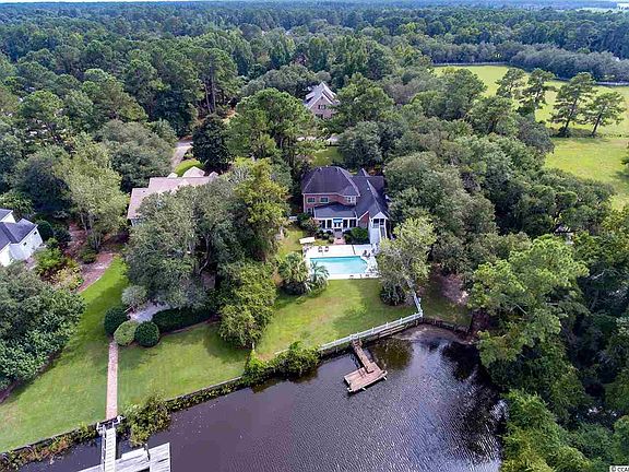 Beautiful two story brick home in Pawleys Island’s premier family residential neighborhood of “Waverly Creek”. While neighboring a 59 acre conservation farm land, this home is beautifully positioned on a 1 acre lot with 100 feet of creek frontage and direct access to the charming Pawleys creeks and the Waccamaw River. A bulkhead is in place on the Creek side of the property as well as floating dock, just beyond the huge saltwater pool and lush landscaping. The First floor has a living room and dining room off the home's foyer that then opens up to the den with 20+ foot ceilings and open concept kitchen with granite counter tops and stainless appliances. The master suite is on the first floor with two closets, master bath is complete with large his and hers walk in closets and large tiled shower and whirlpool tub. It also has access to an incredible all season porch with a 4 panel windows system. Upstairs are 3 bedrooms, plus a office/flex room, a den with a sitting area balcony overlooking pool & creek, and 2 full baths. Home has ample storage, a 2 car garage and automatic front gate. This home is priced to move as creek properties are getting harder to come by – don’t miss this one!