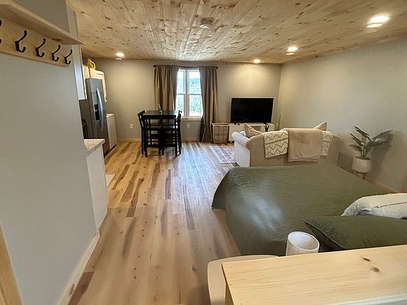 Brand new cozy studio apartment located above a two car garage. The private unit has separate entrance through the back of the building. All utilities included, heat and AC controlled by tenant through large Fujitsu mini-split. 12 acre property with blueberry bushes, Christmas trees and open fields that overlooks Highland Lake.