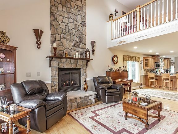 You will be awe-struck the moment you enter! Lovingly cared for and one of the largest homes at the desirable 55+ Blossom Court community. The warm, inviting ambiance makes you feel at home immediately! From the majestic stone fireplace and soaring cathedral ceiling to the wide-open layout there is much to love about this beautiful and unique home! The first floor offers a stunningly designed, expansive kitchen with an abundance of cabinets, granite counters, a convenient desk nook, cathedral ceiling and a sun-drenched breakfast area with access to the back deck. A central dining area open to the living room and kitchen is perfect for entertaining. You’ll appreciate the large first floor primary suite with hardwood floors, ample closet space and private bathroom with double vanities plus two storage towers and a glass enclosed tiled shower! Second floor is host to a full bedroom suite complete with large walk-in closet, a family room sized loft, ¾ bathroom and an unfinished area for additional storage. The oversized garage will easily fit your car plus a good amount storage and the huge walkout basement provides approx. 1,400 SF of additional storage! Outside is a welcoming garden space and large open lawn area with access to nature trails. The clubhouse is available for your private use or to have fun with your neighbors. Litchfield offers small town values, a paved bike/walk path, nature trails, kayak access, pickleball and golf and so much more! Open House 11-1 Sat. 8/26.