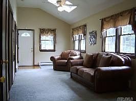 This Stunning, Spacious Approximately 2100 Square Foot Expanded Ranch is nestled on a Lushly Landscaped .91 Acre Property with a Great Location on a Cul De Sac street in Shoreham/Wading River Schools and features a Light & Bright Open Floorplan, Large Living Room/Dining Room, Sunny Eat in Kitchen, Large Family Room with Soaring Ceilings & Brick Fireplace, Office/Study, 4 Bedrooms, 3 Full Bathrooms, Central Air Conditioning, Hardwood Floors, 4 Skylights, All Large Rooms, 2 Car Garage, Gorgeous Country Club Backyard with 24' x 44' Freeform Heated In Ground Pool, 2 Decks, Brick Patio & Much Much More! Peconic Tax Applies.