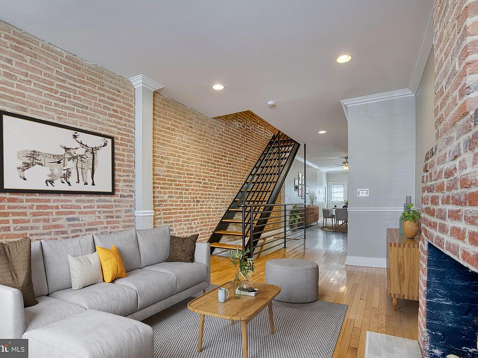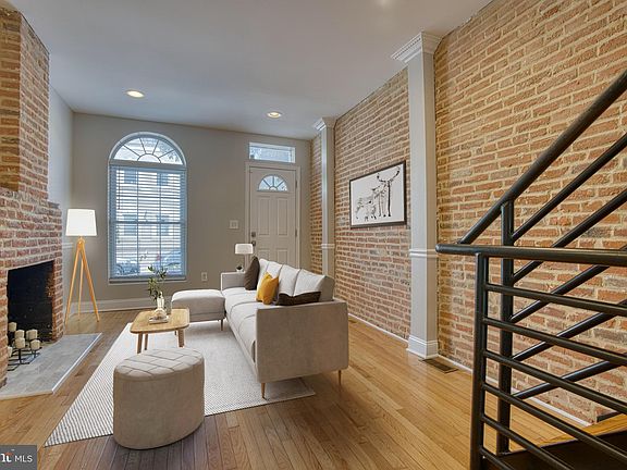 A gem in South Baltimore! This home has it all! 3 Bedrooms , 3 full baths & 1 half bath-**all above grade**, roof top deck, finished basement and a one car parking pad in the rear! The best of both worlds, renovated but with a nod to historic preservation. Amenities include exposed brick, hardwood floors throughout, modern open staircase , recessed lighting, ceiling fans, roof top deck, central AC /forced air, and high ceilings. The main level boasts an open floor plan with a living room with decorative fireplace, dining room, kitchen, large coat closet and half bath. Upper level 1 has a primary suite with an en suite bath, a hall bath and bedroom #2, on upper level two you will find bedroom #3 and full bath #3 as well as a flex space/ area with the door to the back deck. The back deck has a spiral stair case to the roof top deck which has panoramic views of the Baltimore skyline. You can see landmarks like Ravens Stadium, The Bromo Seltzer Tower, and The World Trade Center. Recent updates include: 2022 New Carpet in Basement, Entire Interior painted, Floors refinished on 3rd floor. 2021 New Roof, 2New Decks. 2018 New Hardwoods in Second Floor bedrooms. 2014 New HVAC, New Poured Concrete Parking Pad. 2012 New Appliances-Washer/Dryer, Refrigerator, Microwave. Located with easy access to I95 and short walk to historic Riverside Park where you can walk your dog , swim in the pool or enjoy the outdoor concert series. Easy to show.