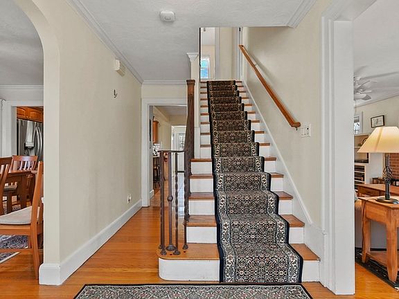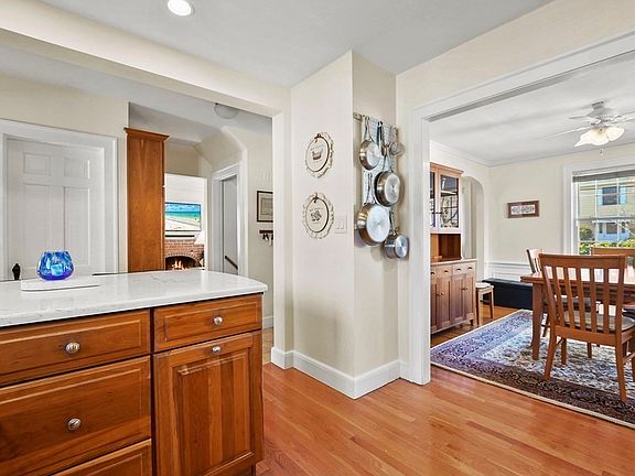 This remarkable Colonial w/ paver pathway & landscaped grounds welcomes you home! Upon entry, you will discover original character boasts throughout. The updated kitchen provides quartz countertops, backsplash & brand-name appliances. The open concept to the dining room is ideal for entertaining! The formal dining room is filled w/ charm including an original built-in hutch along w/ crown molding. Relax in the living room where the wood burning fireplace is the main feature. French doors lead you to the 4-season sunroom complete w/ a gas stove. You can start or unwind from the day in this tranquil space drenched w/ natural light. Your living area extends down to the basement and upstairs! Level 2 offers the primary bedroom w/ 2 closets plus an oversized walk-in closet. Full bath, 2 adaptable bedrooms & dedicated office space finishes upstairs. With the warm weather on its way, envision yourself in your outdoor oasis featuring an above-ground pool, shed & patio!