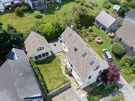 This captivating and impeccable property offers a unique blend of Maine village charm and modern amenities, including a gorgeous granite kitchen, nicely appointed full baths, an open floor plan, and a master suite with an adjoining private office space. The house is bright and airy, with skylights and water views from the front rooms. Heat pumps make this house efficient for heating and cooling. The first-floor den seamlessly connects to a private deck, which leads to a guest cottage with a full bath and two levels. Conveniently located on Bayview St in downtown, residents can easily get to the Belfast Co-op, various dining options, and the harbor. This captivating property is ready for your personal viewing.