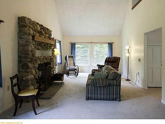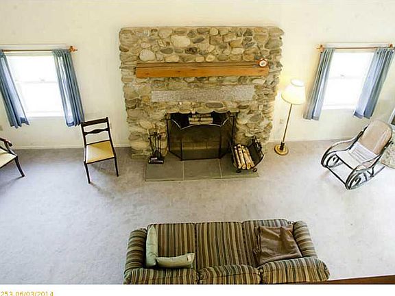 STONE FACED CAPE! Ultra private location on town road and at the end of the street. Stone front exterior with matching stone fireplace in living room, 3 bedroom home plus family room above garage , all in true move in condition. 1 yr AHS Buyer Warranty.