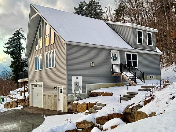STUNNING MOUNTAIN VIEWS, paired with the quality of a newly built contemporary creates an irresistible retreat, right in the heart of the White Mountains. Designed for comfort and efficiency, this property offers a perfect balance and is an ideal primary residence, vacation getaway, or investment opportunity. Expansive windows frame the breathtaking mountain vistas, bringing natural light and warmth to every corner of the home. The open living space features a cozy propane fireplace, soaring ceilings, and a seamless flow to dining area and lofted lounge. Kitchen, bathed in sunlight, is a true centerpiece and offers views as you cook or entertain. With three finished levels, this home provides three bedrooms, three bathrooms plus an office—ideal for hosting family and friends. The finished lower-level family room ensures everyone has room to spread out to relax or play games. A one car garage opens into the mud entry room and adds even more versatility of space. Step outside to the southern-facing deck overlooking the landscaped side yard & fire pit, ready for brilliant sunsets and starlit evenings. Located in the desirable Beechwoods at Intervale community, this home offers low maintenance living with an upscale appeal and is fully furnished for turnkey convenience. Minutes from North Conway and Jackson villages, you'll enjoy more time skiing, hiking, shopping, and dining in Mt. Washington Valley. This fun property will elevate your mountain experiences, inside and out.