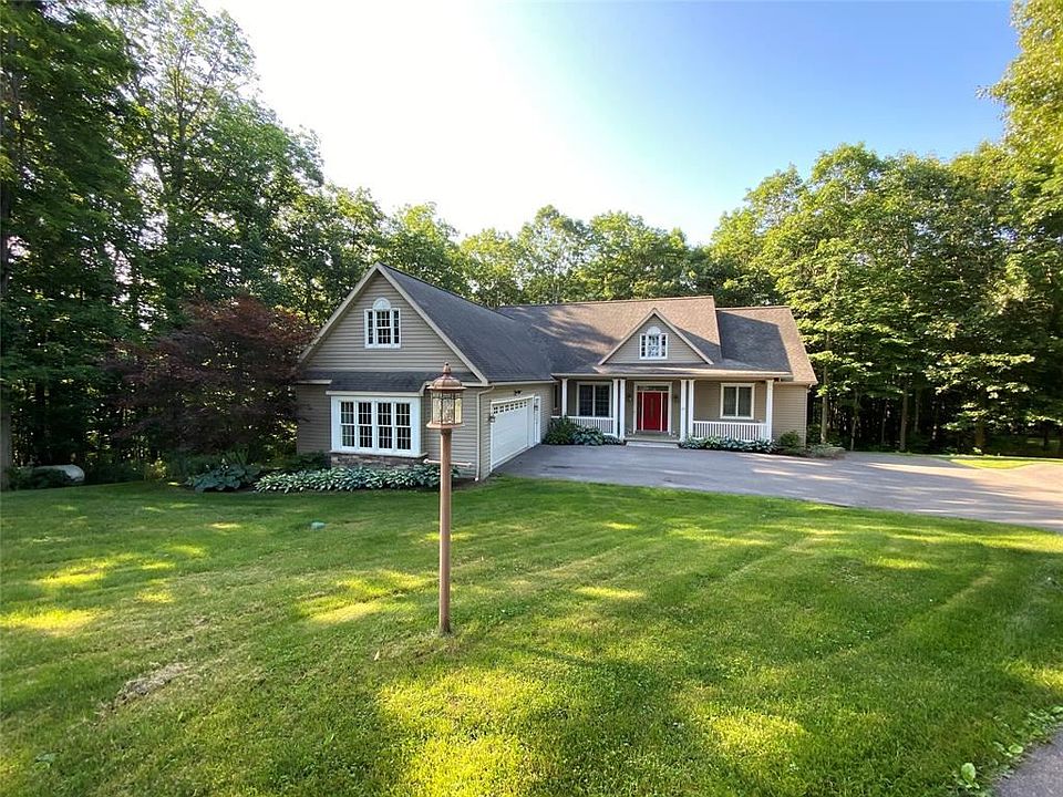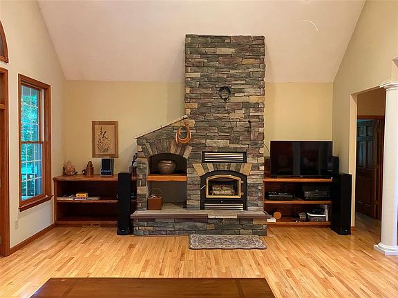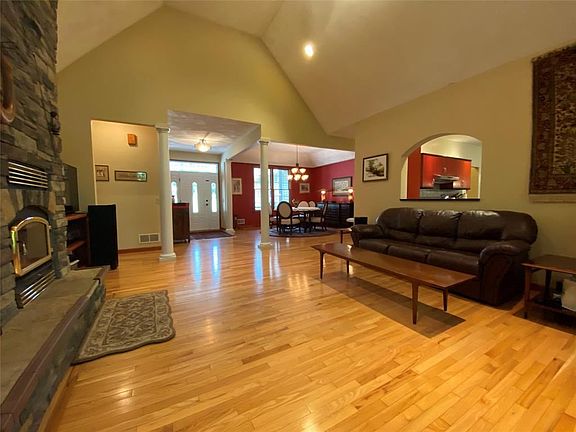 Welcome to your step-less entry, home away from home! This gem sitting at the end of a peaceful cul de sac, overlooking a wooded landscaping fit for poetic description, is ready for you to move right in! One level living at its finest! The updated details abound here in this spacious 4 bedroom home beginning with the pillared, grand entry into on open-concepted floor plan made grander by the cathedral ceiling and floor to ceiling stone fireplace. No corners were cut in the hardwood flooring, 6- paneled hardwood doors, quartz countertops, stainless steel appliances, oversized garage, seamless gutters and Trex decking. The full, walk-out basement with high ceilings offers about 1500 additional sq ft for you to continue using as a shop or hobbyists area, or convert into anything you wish. Call for a tour today!