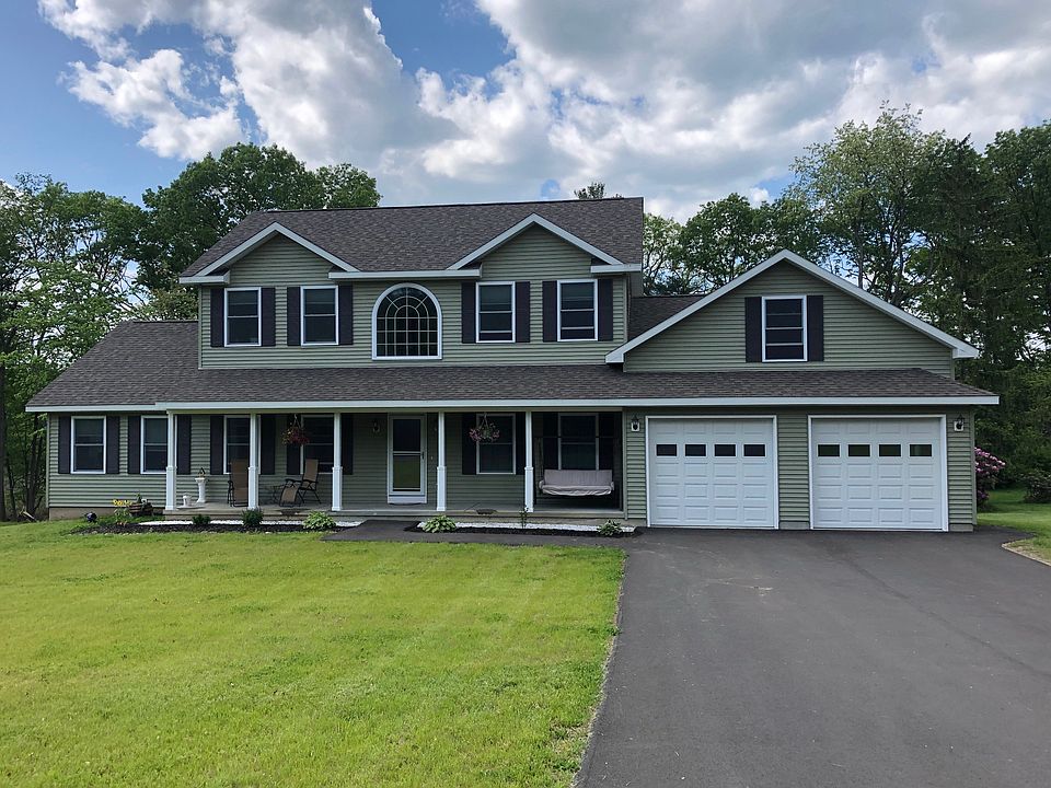 Welcome home to this spacious (2408sf) home that was just built in 2017. This home welcomes you from the moment you arrive with its landscaped yard, wide driveway & large covered front porch (216sf). Inside you will love the open feel of the kitchen and dining area. The kitchen has a great island w/ bar seating, plenty of cabinets and counter space, and matching SS appliances, complete with gas stove. The family room off of kitchen easily closed off via french doors. LR, half bath and laundry area w/ utility sink complete 1st flr. Over sized garage has bonus walk up space ( 14x26) could be finished or used as is for storage. Garage has gas line in place for heater/reinforced wall for future fireplace/stove. Brand new 12x24 deck overlooking sprawling yard. Walk out basement w/ bath rough in
